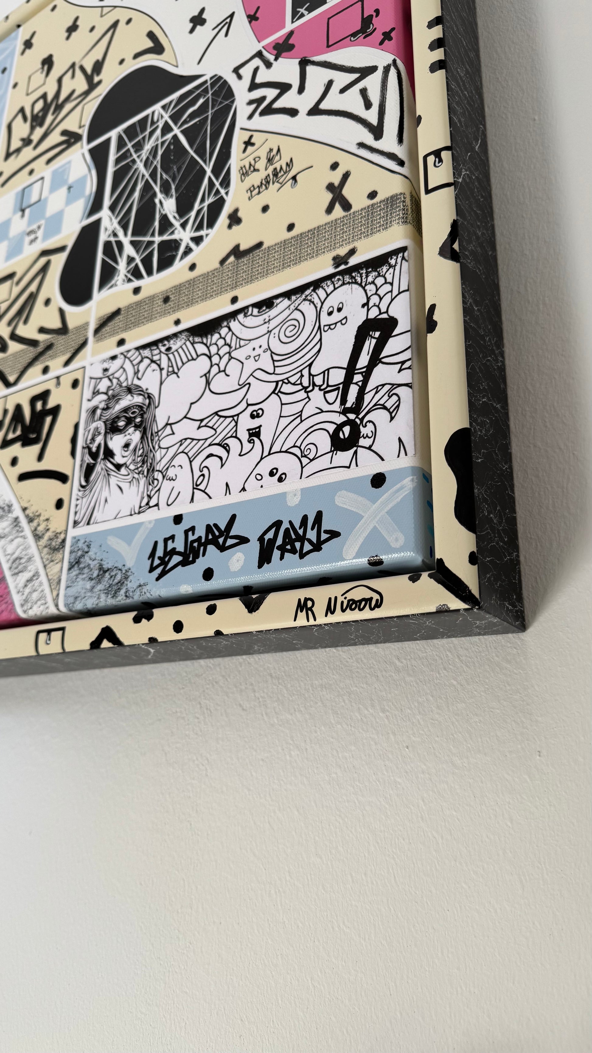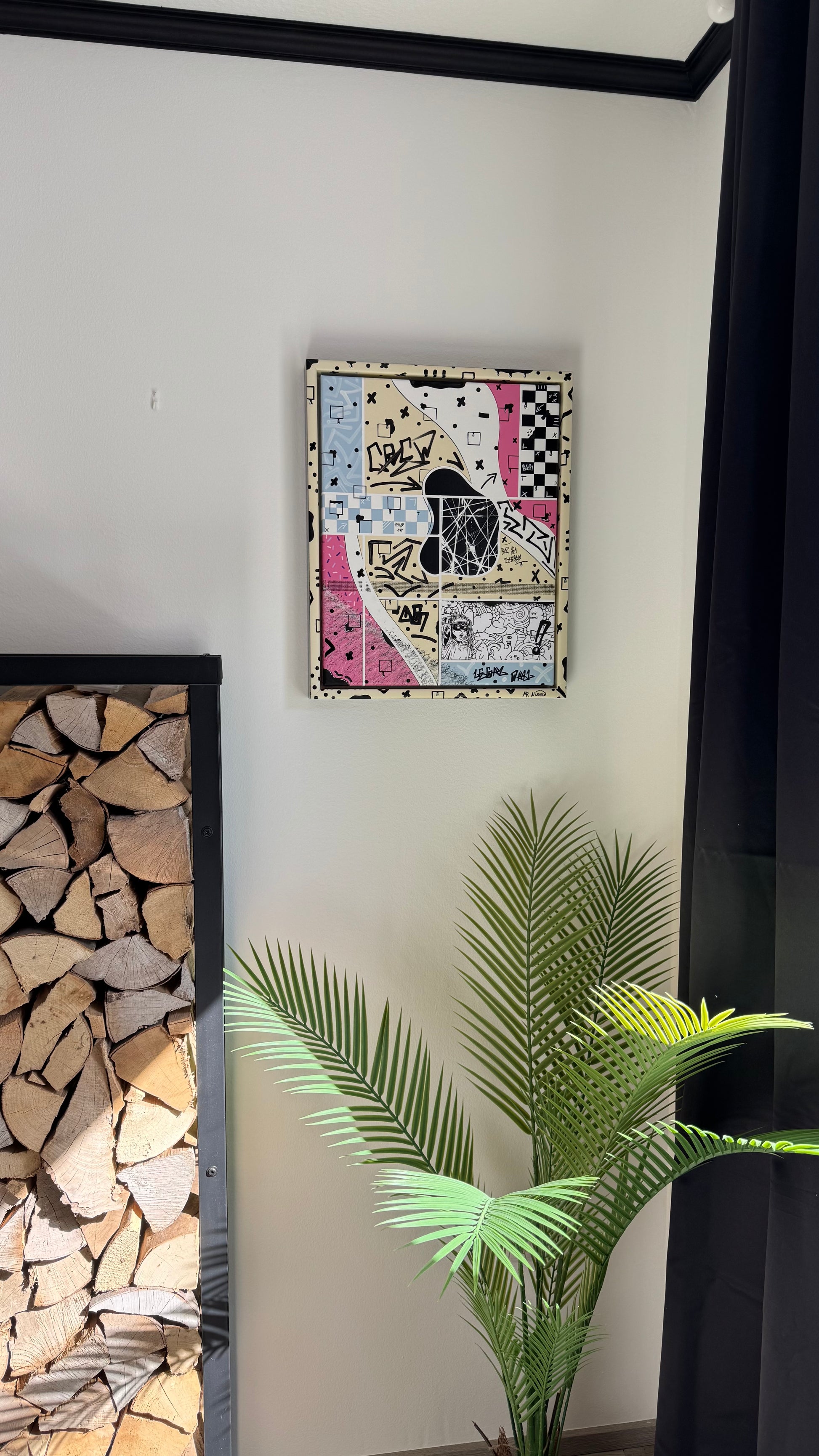 Um das Kunstwerk direkt aufzuhängen, sind auf der Rückseite der Leinwand zwei robuste Aufhängungen angebracht.